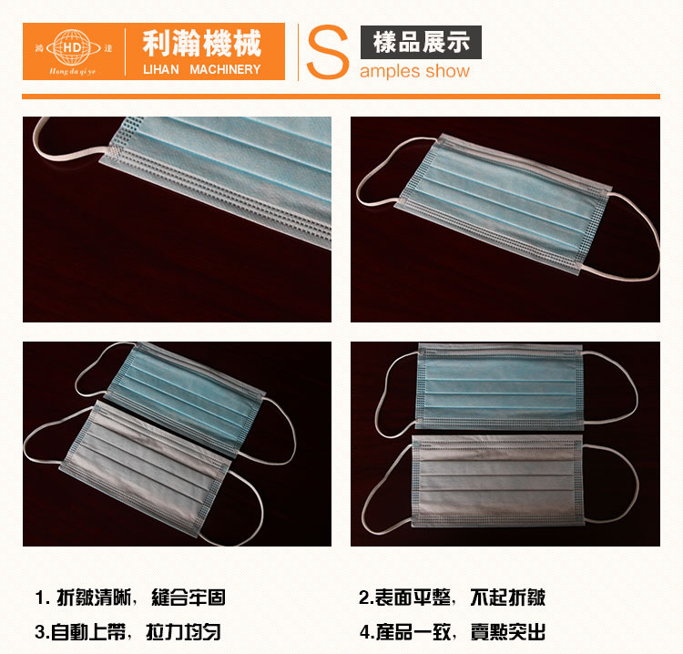 “鴻達(dá)牌”一拖三平面口罩機(jī),又稱:全自動(dòng)一次性口罩機(jī)和全自動(dòng)平面口罩機(jī)。該機(jī)是為出產(chǎn)高端內(nèi)耳帶口罩的抱負(fù)設(shè)備,設(shè)備從質(zhì)料進(jìn)入到制品輸出,全自動(dòng)作業(yè),削減口罩在出產(chǎn)過(guò)程人體的觸摸,然后輕松到達(dá)職業(yè)檢測(cè)規(guī)范,進(jìn)步產(chǎn)品的環(huán)保出產(chǎn)需求,該機(jī)由四臺(tái)制造機(jī)集成,選用先進(jìn)的智能操控渠道,將口罩多道冗雜的出產(chǎn)工藝組合連結(jié)起來(lái),然后完成口罩由質(zhì)料到制品,整機(jī)完成自動(dòng)化作業(yè),功率是傳統(tǒng)的一倍以上,而人工削減三倍以上